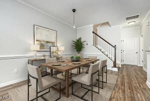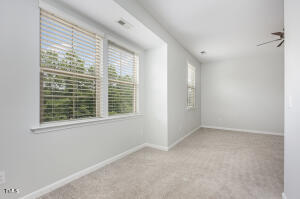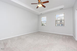 This stunning townhome located in Morrisville showcases an inviting open floor plan that blends style with function. Large windows flood the main living area with natural light. The living room has a gas log fireplace perfect for relaxing evenings. Open to the main living area, the kitchen features a breakfast bar, stainless steel appliances, granite countertops, 42” maple cabinets, and tile backsplash. The upper level has a loft area and two expansive en suite bedrooms, one of which has an architectural tray ceiling. Each bathroom offers luxurious amenities including dual sinks and walk-in showers, with a soaking tub in the primary. This townhome features a large two-car garage, as well as ample street parking for guests, and parking in the back. With quick access to Wegmans, Park West Village’s vibrant dining scene, RTP offices, RDU airport as well as I-540 & I-40 highways, all complemented by scenic greenways and numerous parks, the location truly embodies convenience and comfort at their finest! New water heater in 2022, New garage door spring 2023. New fridge and dishwasher 2023. New flooring & carpeting 2021. New overhead garage storage 2023.